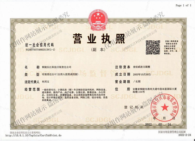 公司:銅陵長江科技有限責(zé)任公司 電話:0562-2876699 地址:銅陵市淮河大道中段雙星國際大廈南樓1104號