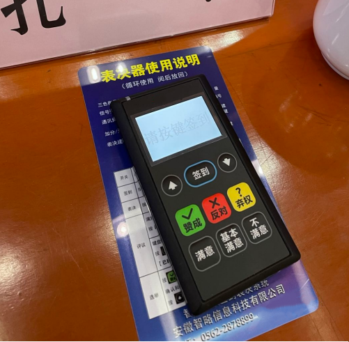 2、電子表決:會議電子表決系統(tǒng)的表決器,具有贊成”、“反對”、“棄權(quán)按鍵鮮明,操作簡易,待機持久,會前反復(fù)測試,會中現(xiàn)場支持。特別適合于市、縣(區(qū)人民代表大會涉及表決事項時使用,數(shù)據(jù)準確,能和大會主持詞、顯示屏同步協(xié)調(diào)使用,頗受人代會的歡迎和好評。