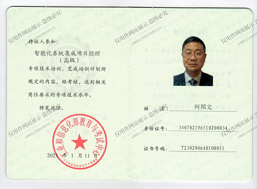 智能化系統(tǒng)集成高級項目經(jīng)理證書